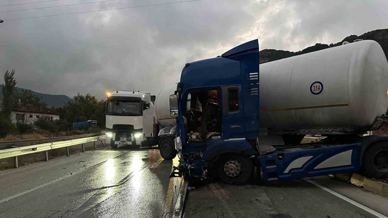 Burdur’un Çeltikçi ilçesinde bariyerlere çarpan tır makasladı, kara yolu kısa süreliğine trafiğe kapandı.