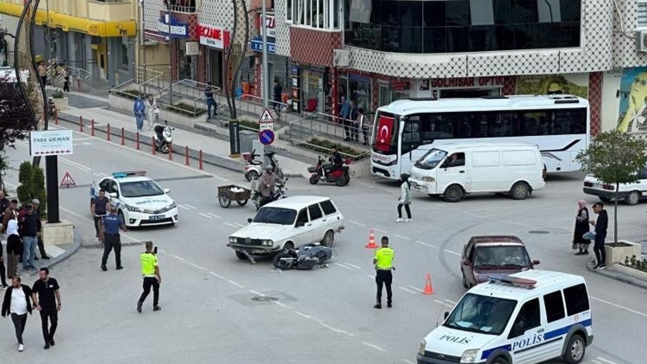Cumhuriyet Caddesi istikametinde 15 ACP 452 plakalı motor ile seyir halinde olan M.D. (18) ara sokaktan çıkan A.Ö idaresinde 15 ABM 431 plakalı otomobil ile çarpıştı. Çevredekilerin hemen yardıma koştuğu kazada, 112 sağlık ekiplerine de haber verildi. Devlet Hastanesi aciline 100 metre mesafede olan kazaya anında intikal eden ekipler, yaralı M.D.’yi ilk müdahalenin ardından Gölhisar Devlet Hastanesine kaldırdı.