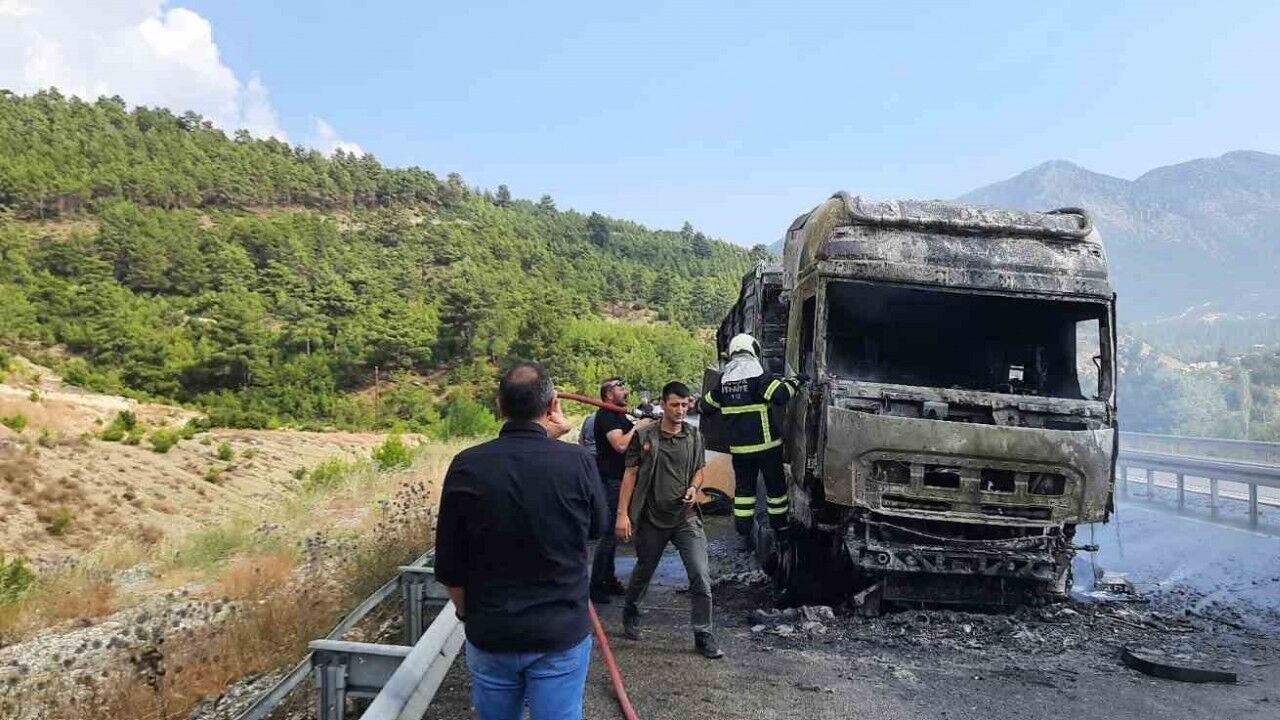Olay, saat 16.00 sıralarında Burdur’un Çeltikçi ilçesi Tekkeköy mevkisi D-650 kara yolu üzerinde meydana geldi. Edinilen bilgilere göre, Remzi Y. (49) idaresindeki 06 CNU 487 plakalı tırın motor bölümünden bir anda dumanlar yükselmeye başladı. Alevleri fark eden sürücü, aracı emniyet şeridine çekerek itfaiyeyi aradı. İhbar üzerine olay yerine gelen itfaiye ekipleri, tırdaki yangına müdahale ederek alevleri kontrol altına aldı. Tamamen yanan tır kullanılamaz hale gelirken otluk alan sıçrayan alevler de itfaiye ekiplerince kısa sürede söndürüldü. Olayla ilgili inceleme başlatıldı.
