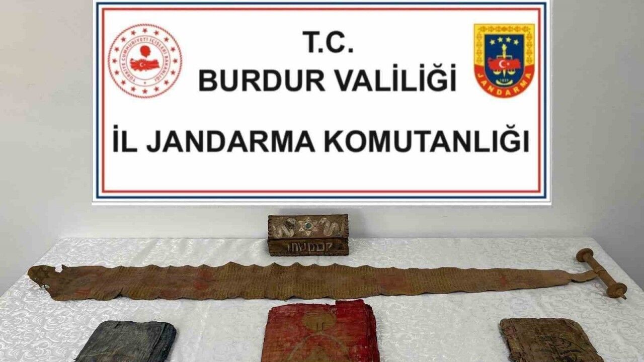 Burdur’un Bucak ilçesinde jandarma ekiplerinin Kültür ve Tabiat Varlıkları mirasının korunmasına yönelik çalışmaları neticesinde 3 adet el yapımı kitap ve 1 adet muhtelif tarihi eser ele geçirildi.