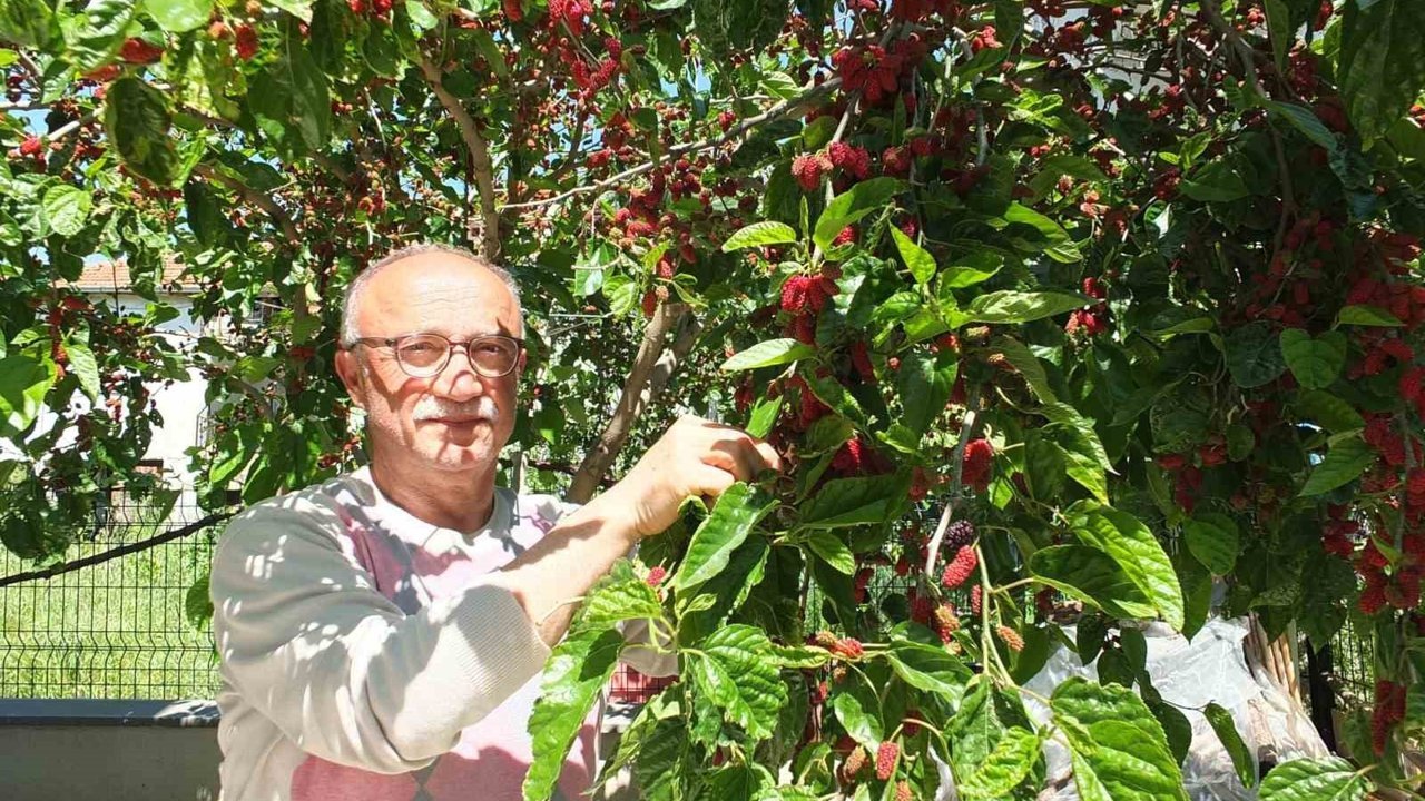 Ören Mahallesi'nde ikamet eden Mustafa Devrim, bahçesinde yetiştirdiği 20 adet meyve ağacının arasında bulunan dut ağaçlarının meyve verme sürecinin diğerlerine göre daha erken olduğunu dile getirdi. Devrim'in dikkat çeken bahçesi, bölgedeki diğer vatandaşların da ilgisini çekti. Özellikle bu yılın ürün artışıyla dikkat çeken Devrim, ağaçlarının bakımına özen gösterdiğini ve bu özenin karşılığını bol meyve verimiyle aldığını belirtti. 4 çocuk babası Mustafa Devrim 'Meyva ağaçlarının erkenden çiçek açması ve meyve vermeye başlaması, bu yılın bereketli bir dönem olabileceğine işaret etti. Bahçemdeki kırmızı dutda erkenden meyve verdi. Benim meyveli ağacım herkesin dikkatini çekiyor. Bu meyveleri şeker hastalarıda yiyebiliyor. Bunları komşularımızla beraber yiyeceğiz. Önümüzdeki haftalarda eriklerle kayısılarda çıkacak. İnşallah, bu sene bereketli bir sezon olacak' dedi.