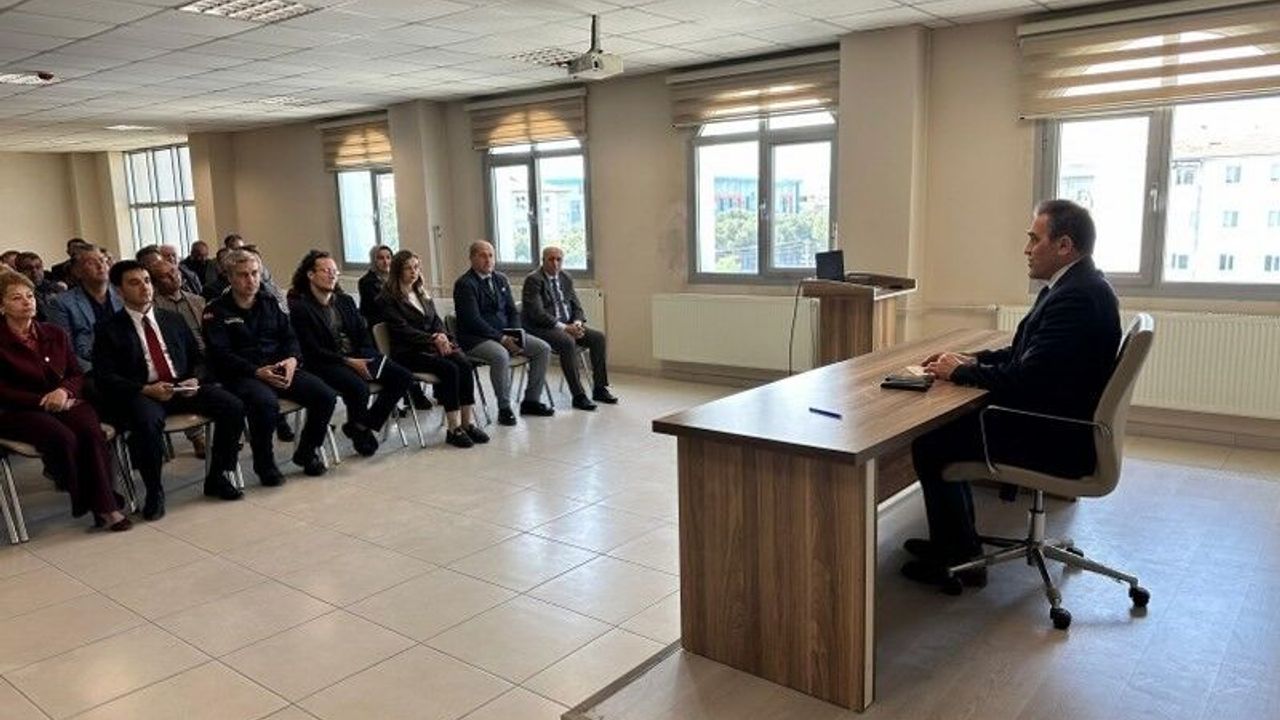 Burhaniye’de Kaymakam İlyas Memiş’in başkanlığında Muhtarlar Toplantısı yapıldı. Kaymakamlık Salonundaki toplantıya, muhtarların yanı sıra kurum amirleri de katıldı.