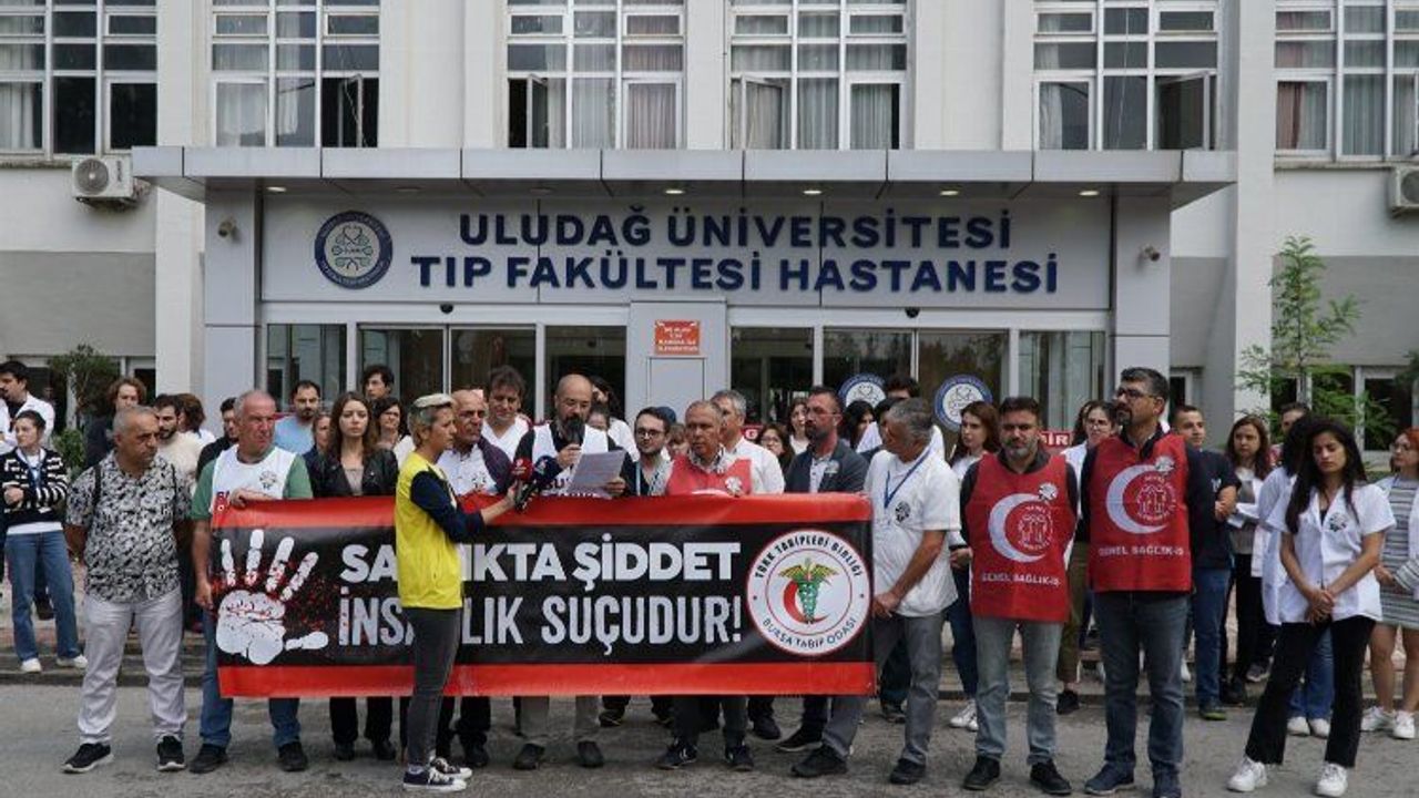 Bursa Uludağ Üniversitesi Tıp Fakültesi önünde, ‘Sağlıkta Şiddet İnsanlık Suçudur’ pankartı açan hekimler adına konuşma yapan Bursa Tabip Odası Başkanı Dr. Levent Tufan Kumaş, “Beş sene önce, 2 Ekim 2018’de Dr. Fikret Hacıosman’ı, görev yaptığı hastanede silahlı saldırı sonucunda yitirmiştik. Kendisini ve sağlıkta şiddet nedeniyle kaybettiğimiz tüm hekim/sağlık emekçilerini saygıyla anıyoruz. Sağlıkta şiddet son bulana kadar mücadele edeceğimize yeniden söz veriyoruz” dedi.