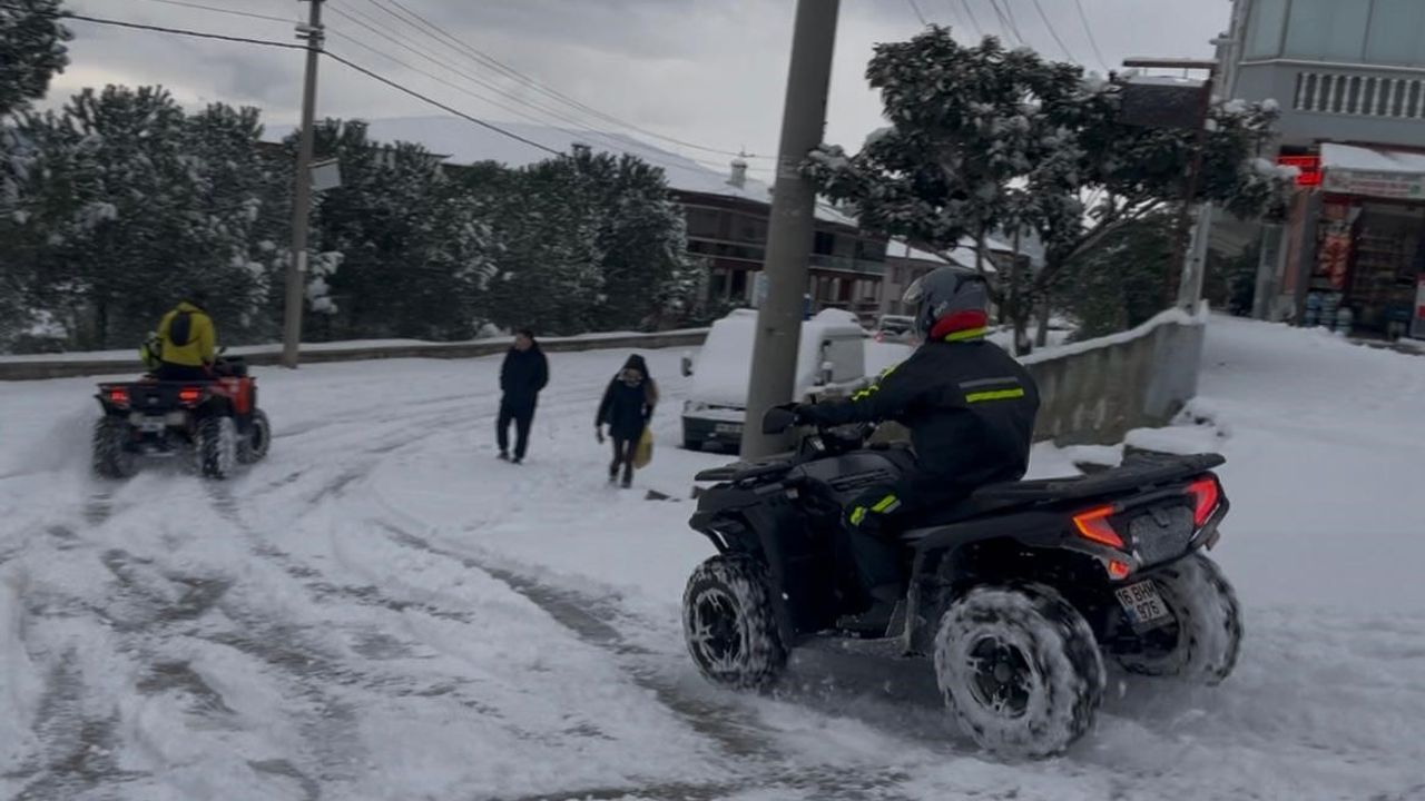 Mudanya'da bazı vatandaşlar dört tekerli motorlarıyla kar üzerinde sürüş yaparken, çocuklar sokaklara çıkarak kardan adam yaptı. Sokaklar adeta çocukların kar pistine döndü.