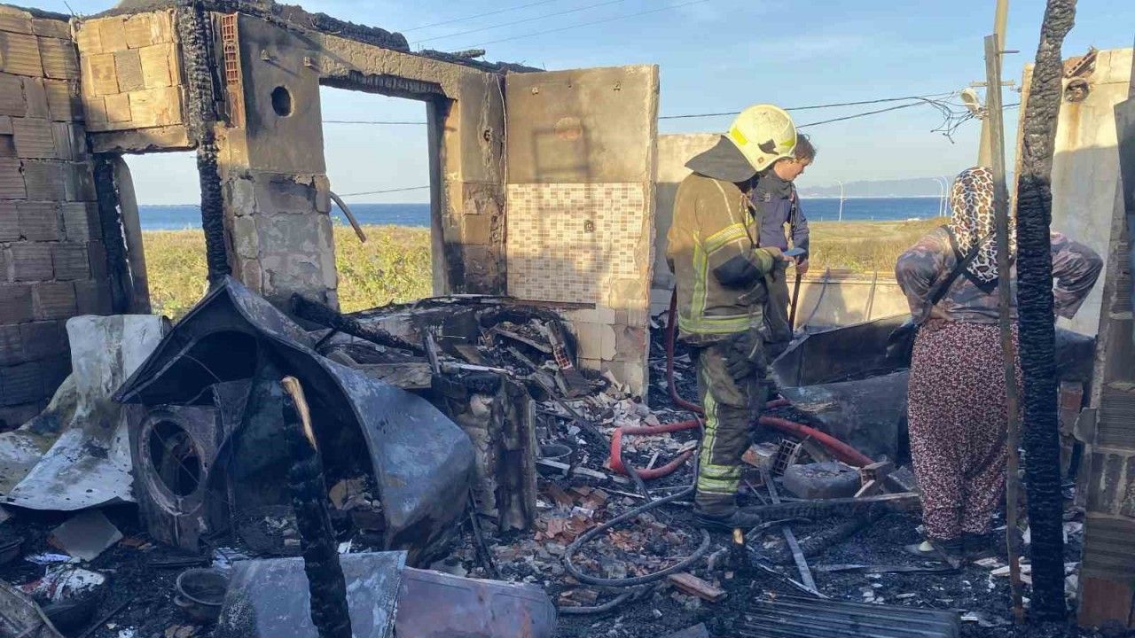 Bursa’nın Mudanya ilçesinde çıkan yangında bir ev küle dönerken, yanındaki bina da alevler ve söndürme esnasındaki su nedeniyle hasar gördü.