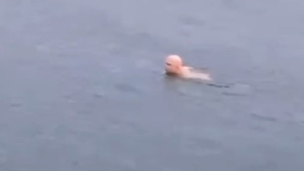 Bursa'nın Mudanya ilçesinde hava sıcaklığının sıfırın altında seyrettiği sabah saatlerinde bir vatandaşın denize girerek yüzmesi, görenleri hayrete düşürdü.