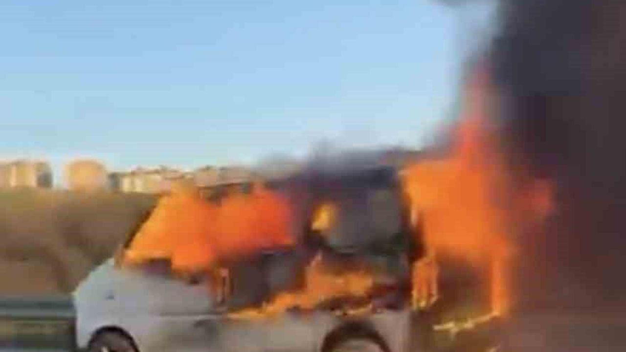Bursa çevre yolunda seyir halindeki hafif ticari araç alev aldı. Yangın, itfaiye ekiplerinin müdahalesiyle söndürüldü.
