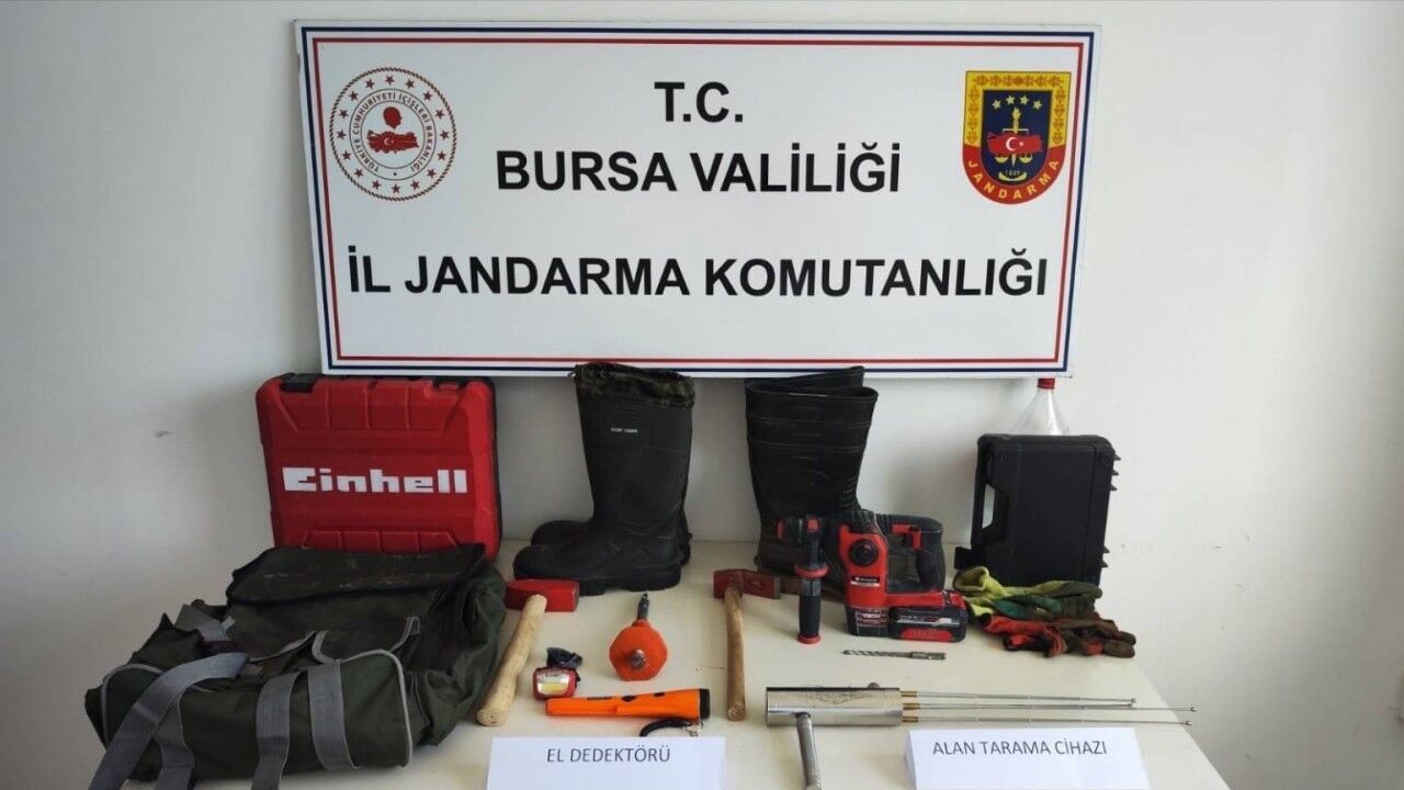 Bursa İl Jandarma Komutanlığı İstihbarat Şube Müdürlüğü ve İnegöl Jandarma Komutanlığı ekipleri, Esenköy Mahallesi eski kilise bölgesinde kaçak kazı yapıldığı bilgisine ulaştı. Harekete geçen ekipler, bölgede kaçak kazı yapan 2 şahsı suçüstü yakaladı. Şüpheliler Murat Ş. (40) ve Mahmut E. (20) gözaltına alınırken, kazı için kullandıkları tarama cihazı, el dedöktörü, kazma, çekiç, elektrikli matkap ele geçirildi.