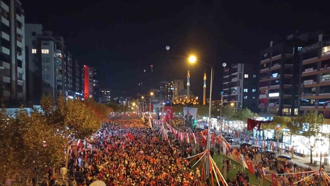 Bursa Büyükşehir Belediyesi ve Nilüfer Belediyesi tarafından düzenlenen "Cumhuriyet Yürüyüşü"ne katılan on binlerce Bursalı, ellerindeki Türk Bayrakları ve Ata posterleriyle Cumhuriyet Bayramı’nın 102. yılını büyük bir coşkuyla kutlandı. Bursa’nın tek yürek olduğu yürüyüşün ardından sanatçı Edis sahne alarak, vatandaşlara muhteşem bir bayram yaşattı. Onbinlerce Bursalının cep telefonlarının ışıklarıyla oluşturduğu renkli görüntüler ise dronla kaydedildi.