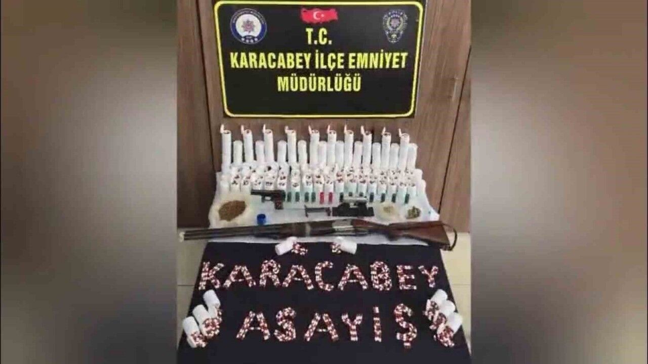 Karacabey İlçe Emniyet Müdürlüğünce Uyuşturucu veya Uyarıcı Madde İmal ve Ticareti suçu işlendiği tespit edilen ikamete şafak vakti operasyon yapıldı. Onlarca polisin katıldığı operasyonda, polisler ikametlerin etrafını sardı. Koçbaşları ile kapılar kırılmasının ardından yapılan ikamet aramalarında 10 bin 488 adet sentetik ecza uyuşturucu hap, 69 gram skunk, 2 adet tabanca, 1 adet tüfek ve 1 adet kasatura ele geçirildi. Konu ile ilgili 3 şüpheli sevk edildiği adli makamlarca tutuklandı.