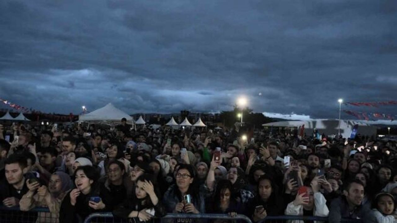 Konser sırasında başlayan yağmura rağmen kendilerini müziğin ritmine bırakan gençler, keyifli bir akşam geçirdi.