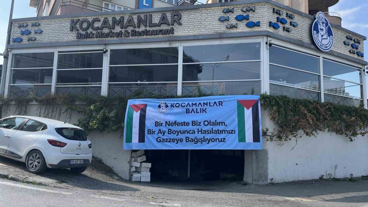 İsrail’in Filistin ve Gazze halkı üzerinde yürüttüğü soykırım ve işgal politikasına dünyanın her yerinden tepkiler sürerken, 8 Ekim’de yapılan ateşkesin ardından yardımlarda bölge halkına ulaştırılmaya çalışılıyor. Dünyanın ve Türkiye’nin dört bir yanından Gazze halkı için yardım yapılırken Bursa’nın ünlü balıkçısı da 5 ayrı restoranındaki 1 aylık hasılatı bağışlama kararı aldı. Firmanın şubelerine astığı Filistin bayrakları ve "Bir nefes de biz olalım, bir ay boyunca hasılatımızı Gazze’ye bağışlıyoruz" gelen müşterilerin dikkatini çekiyor.