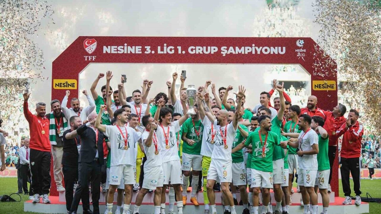 TFF 3. Lig 1. Grup’ta 2 hafta kala oynadığı Artvin Hopaspor maçında şampiyonluğu garantileyen Bursaspor, 4-1 mağlup ettiği Bornova 1877 maçından sonra düzenlenen törenler şampiyonluk kupasına kavuştu. Törende futbolcular, Atatürk Kompleksi Matlı Stadı’nda kurulan platforma tek tek çağırıldı. Daha sonra Türkiye Futbol Federasyonu Başkanı İbrahim Hacıosmanoğlu, kupayı Furkan Emre Ünver ve Ahmet İlhan Özek’e takdim etti.