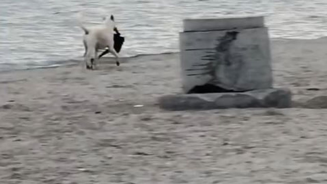 Büyükçekmece’de dün akşam saatlerinde plajda gezinen bir sokak köpeği, bir kadının çantasını kapıp kaçtı. Kadın uzun süre köpeğin peşinden bağırarak koşarken, köpeğin çantasını bırakmasıyla kovalamaca son buldu. Yaşananlar bir vatandaşın cep telefonu kamerasıyla kaydedildi.