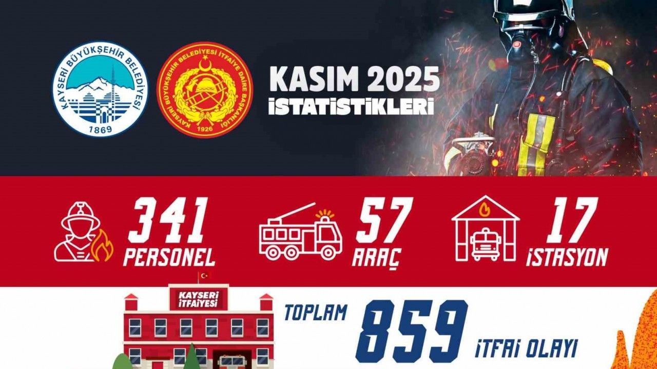 Kayseri Büyükşehir Belediyesi’nin 17 istasyon, 57 araç ve 341 personelden oluşan itfaiye teşkilatı, Kasım ayı boyunca 523 yangın, 257 kurtarma, 78 trafik kazası ve 1 su baskınına başarılı bir şekilde müdahale ederek toplamda 859 itfai olayda hızlı, etkin ve titiz bir şekilde görev yaptı.