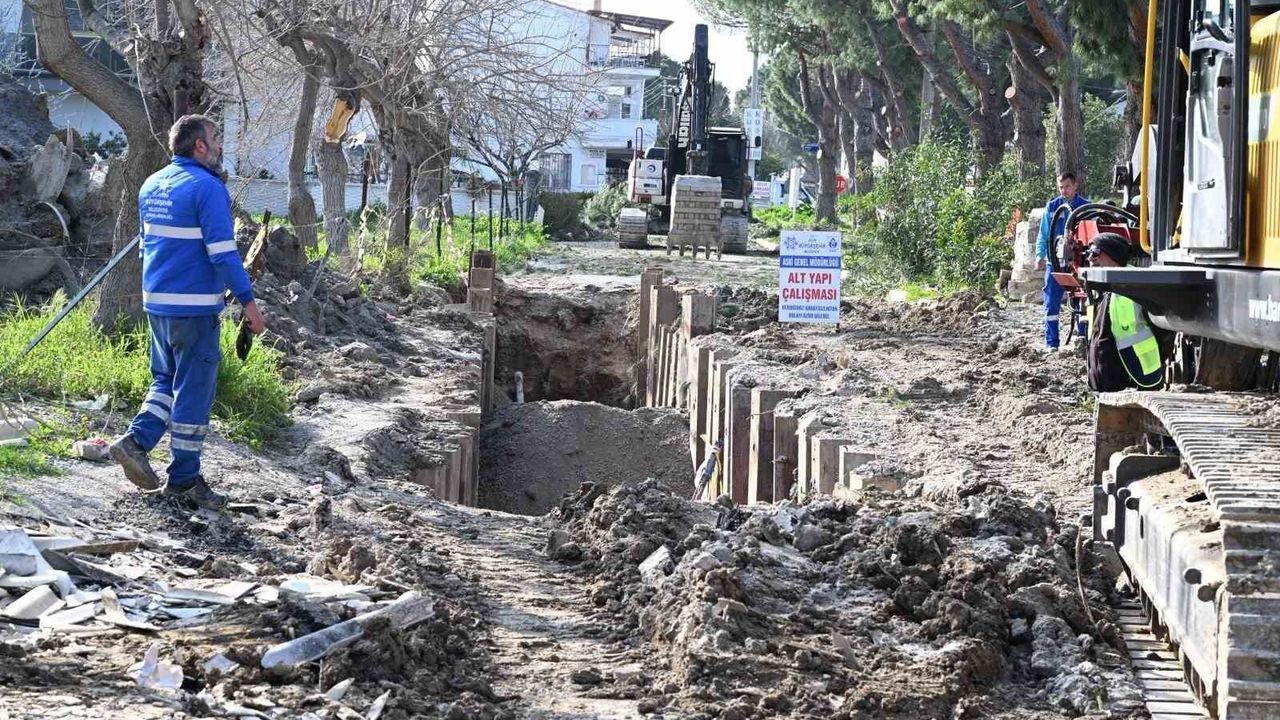 Aydın Büyükşehir Belediyesi ekipleri, Kuşadası'na yapılan 9 milyonluk altyapı yatırımında çalışmalarına aralıksız devam ediyor.