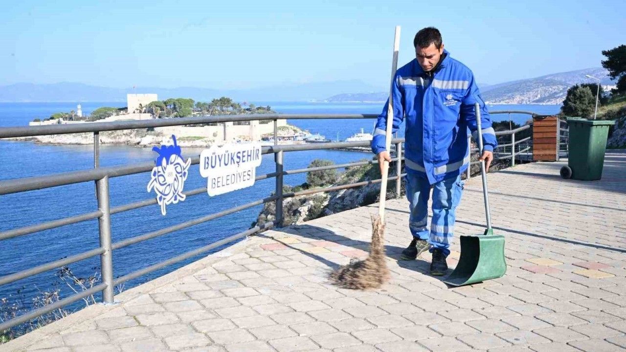 Aydın Büyükşehir Belediyesi ekipleri, Kuşadası’nda cadde, bulvar ve otobüs duraklarında kapsamlı çevre bakım ve temizlik çalışması gerçekleştirdi.