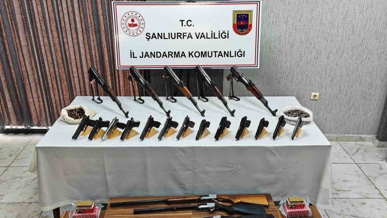 Şanlıurfa İl Jandarma Komutanlığı Kaçakçılık ve Organize Suçlarla Mücadele Şube Müdürlüğü ekipleri, silah kaçakçılarına yönelik Viranşehir ilçesindeki 14 adrese eşzamanlı operasyon gerçekleştirdi. Operasyonda 16 kişi gözaltına alınırken yapılan aramalarda 5 adet kalaşnikof piyade tüfeği, 13 adet ruhsatsız tabanca, 5 adet ruhsatsız av tüfeği, 35 adet farklı silahlara ait şarjör ve 2 bin 590 adet farklı çap ve ebatlarda fişek ele geçirildi. Zanlıların silahları çamaşır makinesinin içerisi de dahil olmak üzere toprağa gömülü bidon, kayalık alan ve yatak altlarına gizledikleri görüldü.