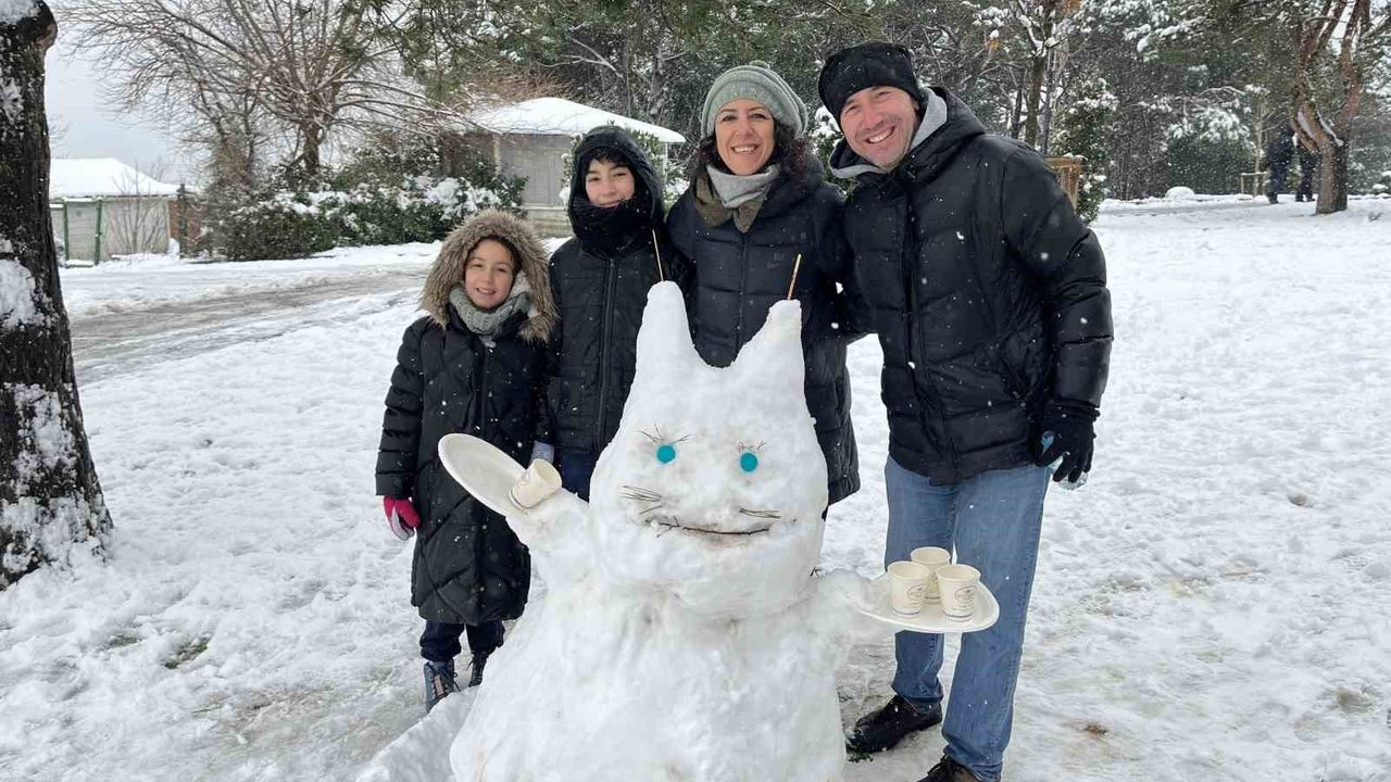Meteoroloji Genel Müdürlüğü'nün yaptığı uyarıların ardından İstanbul'da bugün de kar yağışı etkili oluyor. Anadolu Yakası'nda karın en çok etkili olduğu noktalardan biri olan Çamlıca Tepesi beyaz örtüyle kaplandı. Okulların ara tatilde olmasıyla birlikte çocuklar aileleriyle birlikte tepeye akın etti. Çocuklar kartopu savaşları ve kardan adamlar yaparak karın keyfini doyasıya çıkardı. Tepede en çok dikkat çeken ise kardan yapılan kedi oldu.