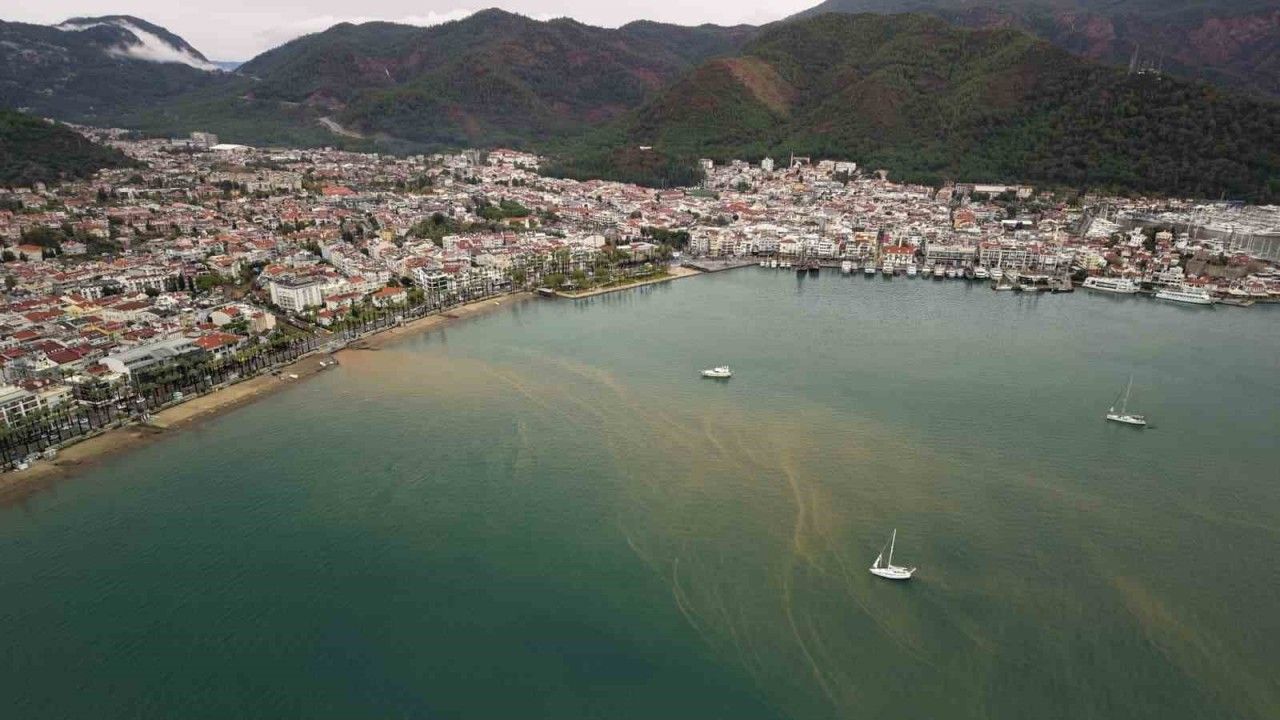 Marmaris’te önceki gece yarısından itibaren etkili olan yağışlar aralıklı olarak devam ederken, ilçede dün şiddetli fırtına sebebiyle dört tekne karaya oturmuş, ağaçlar devrilerek yollara dökülmüştü. Yağışlar, özellikle kırsal mahalleleri etkilerken, yollar ve tarlalarda da yoğun su birikintileri meydana gelmişti. İlçe genelinde bugün sabah saatlerinden itibaren yağış aralıklı olarak etkisini sürdürürken, dereler ve sokaklardaki yağmur suları da denize dökülmeye başladı. Marmaris Kemeraltı Mahallesi Halk Plajı mevkiinde denizle buluşan yağmur suları ise denizi çamur rengine büründürdü. Yağışların ardından çamura rengine bürünen deniz ise drone pilotu Resul Bulguroğlu tarafından havadan görüntülendi. Denizde oluşan renk değişimi net bir şekilde görünürken, derelerin denizle birleştiği noktadaki çamur rengi yoğunluğu dikkat çekti.