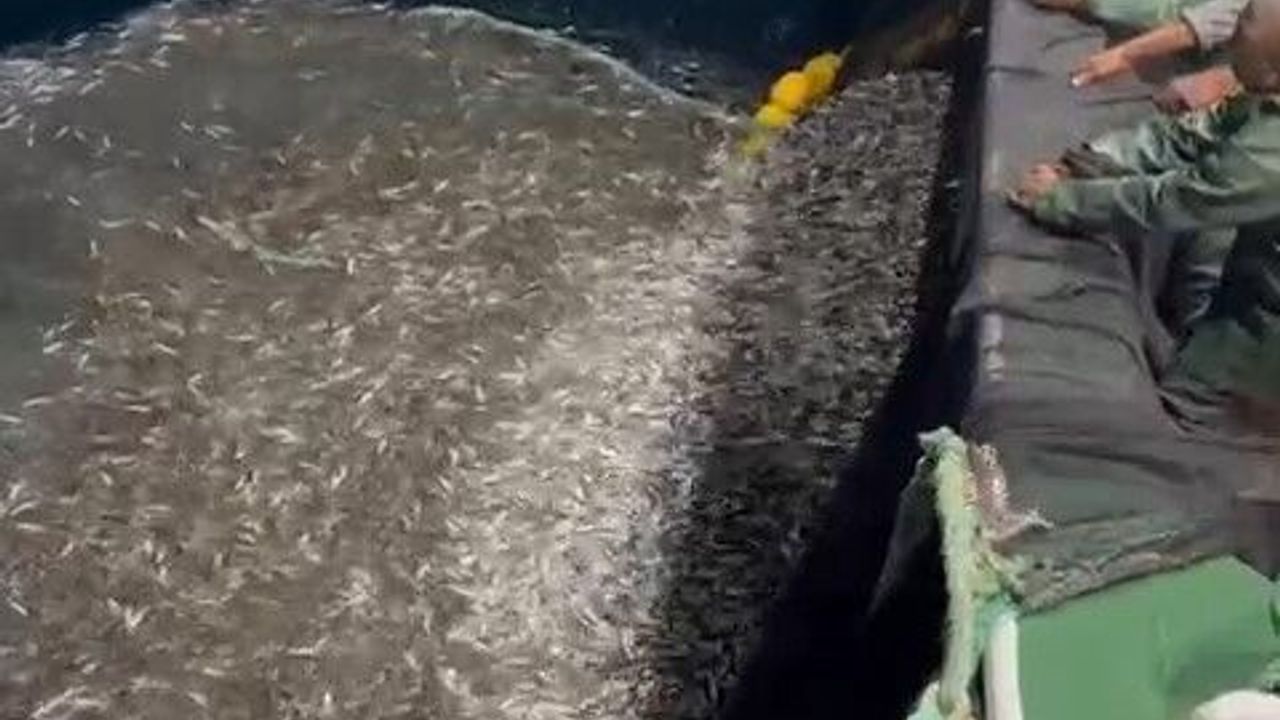 Çanakkale’de ava çıkan balıkçı teknesi ağlarına takılan binlerce yavru kupes balığını denize geri saldı.