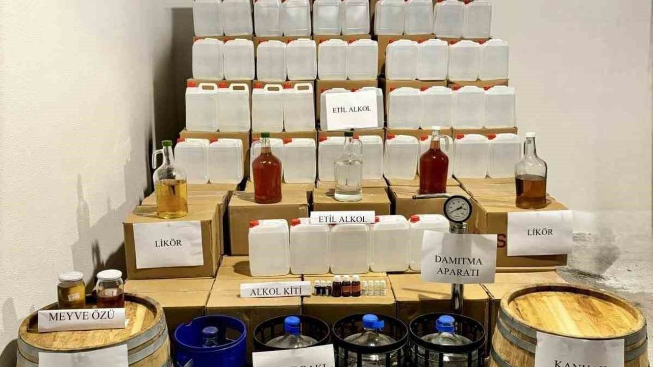 Yapılan aramalar sonucunda, 3 bin 317 litre etil alkol, 234 litre kanyak, 70 litre kaçak rakı,28,5 litre meyve likörü, 14 adet alkol kiti, 1 adet damıtma aparatı, 1 adet sanayi tipi gaz ocağı ele geçirildi.