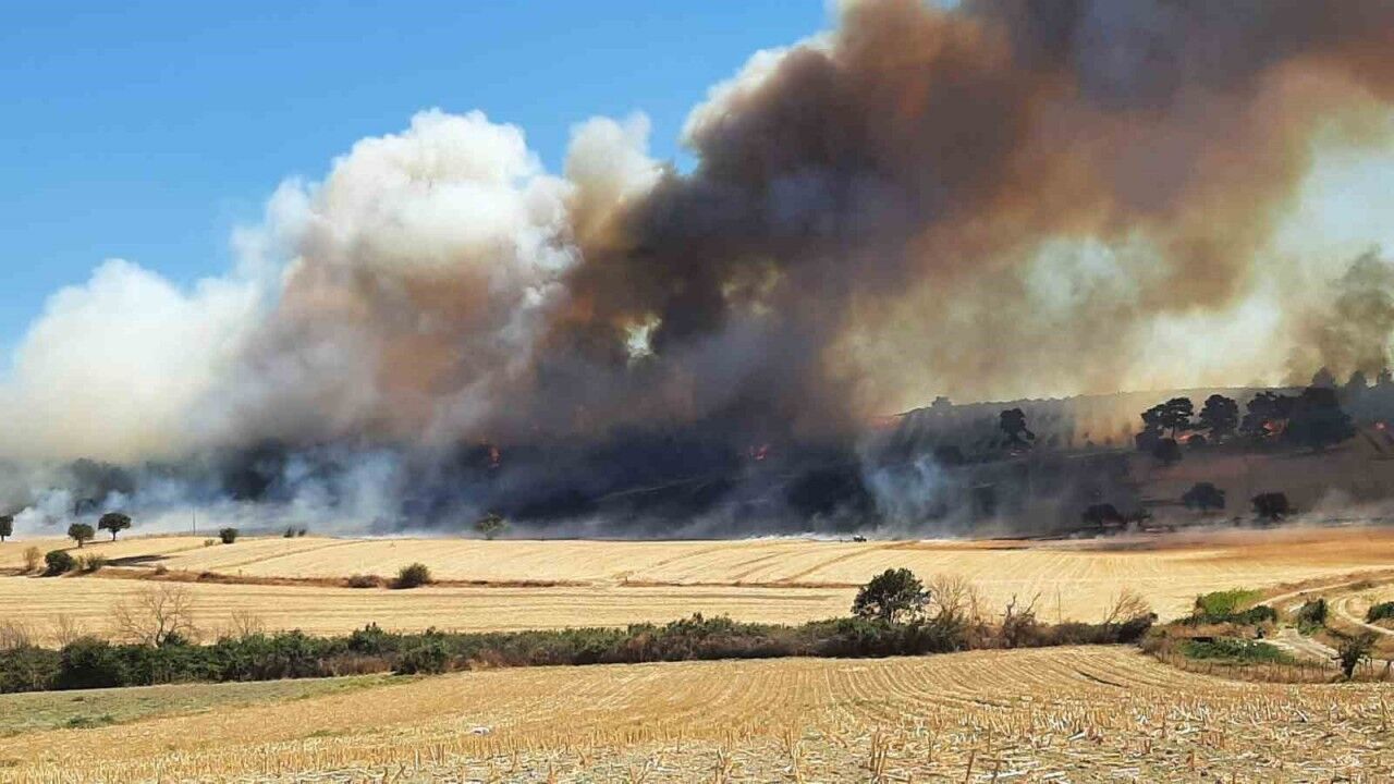 Çanakkale’nin Ezine ilçesinde çıkan orman yangınına Orman Bölge Müdürlüğü ekipleri havadan ve karadan müdahale ediyor.