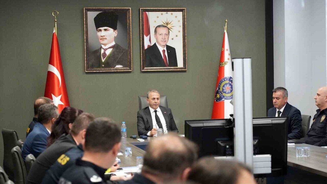 İl Emniyet Müdürlüğü Toplantı Salonu’nda gerçekleştirilen toplantıda merkez ve ilçelerimiz polis bölgesinde yürütülen faaliyetler masaya yatırıldı. İl Emniyet Müdürü Kenan Kurt, merkez ve ilçelerdeki okul çevresi güvenliği, uyarıcı ve uyuşturucu ile mücadele, araç ve motosiklet denetimleri, düzensiz göçmen ve genel asayiş konuları başta olmak üzere ayrıntılı bilgi aldı.