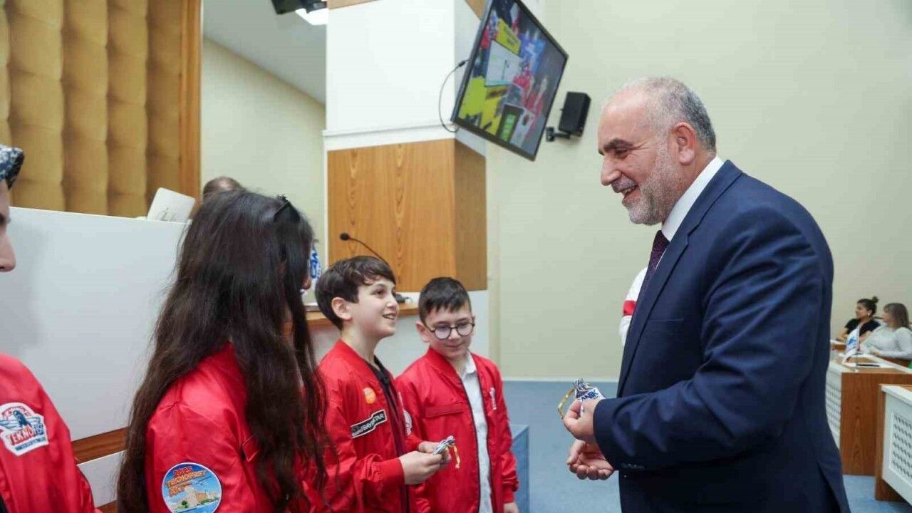 TEKNOFEST KKTC Sosyal İnovasyon Yarışması Ortaokul Kategorisi’nde "En İyi Sunum Ödülü"nü kazanan Canik Özdemir Bayraktar Keşif Kampüsü öğrencileri, Canik Belediye Başkanı İbrahim Sandıkçı tarafından Belediye Meclisi’nde ağırlandı.