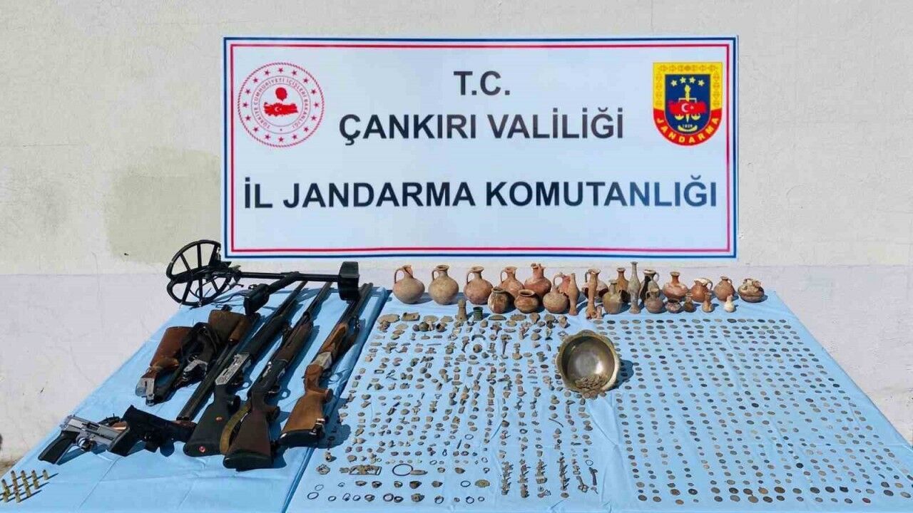 Çankırı’da jandarma ekipleri tarafından düzenlenen operasyonda 53 adet tarihi eser ve 512 adet sikke ele geçirildi.