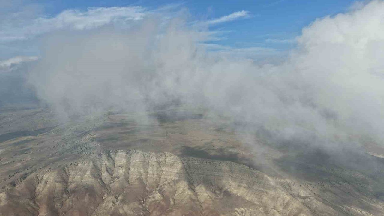 Çankırı'da etkili olan sis, güneşin doğuşuyla birlikte adeta görsel bir şölene dönüştü. Sis bulutlarının arasından yükselen güneş, beyaz örtüyle bütünleşerek büyüleyici bir atmosfer oluşturdu. Yaklaşık 500 metre yükseklikten şehri kaplayan sis bulutları havadan görüntülendi.