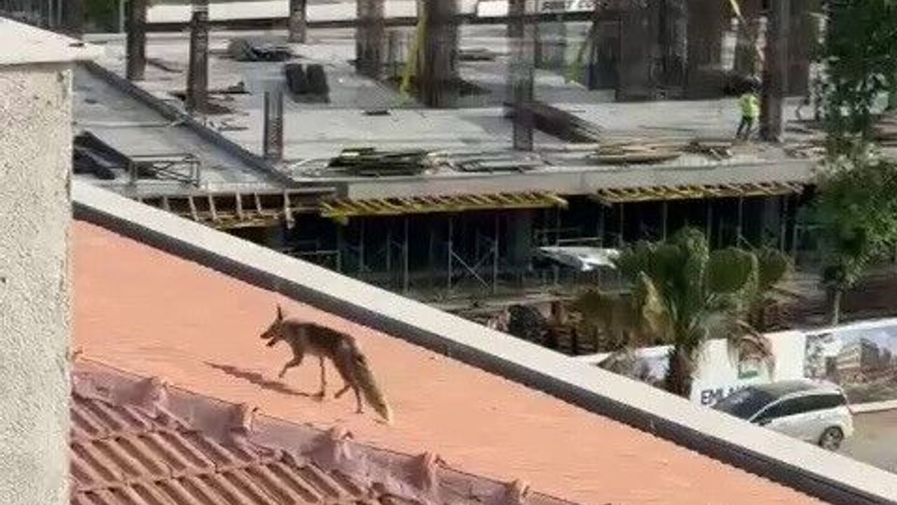 Adıyaman’da, bir binanın tepesine çıkan tilki ekipleri ve inşaat işçilerini harekete geçirdi.