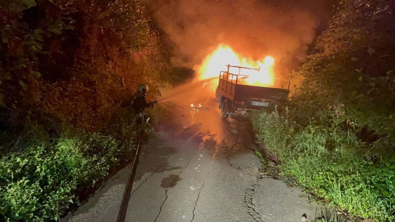 HABER:ARZU ERBAŞ/Çayeli ilçesi Yenipazar Mahallesinde aniden alev alan kamyonet paniğe sebep oldu. Sözlerler mevkiinde akşam saatlerinde yaşanan olayda alevleri görenlerin haber vermesi ile Çayeli Belediyesi itfaiye ekipleri olay yerine sevk edildi. Bir anda büyüyen alevler kontrol altına alındı. Olayda araç kullanılamaz hale gelirken yaralanan olmadı.