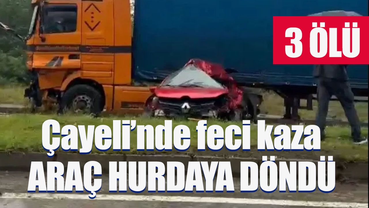 Rize’nin Çayeli ilçesi çıkışında meydana gelen trafik kazasında, otomobilin tırla çarpışması sonucu üç kişi yaşamını yitirdi.