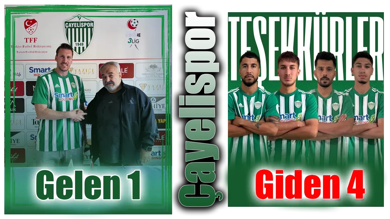 3. ligde 6 Şubat'ta sona erecek olan transfer sezonu öncesi ligde bir türlü istediği sonuçları alamayan Çayelispor'da hareketlilik devam ediyor. Teknik Direktör Veyis Kanber'in raporu doğrultusunda 4 futbolcu ile yollar ayrılırken 1 futbolcu daha kadroya dahil edildi.