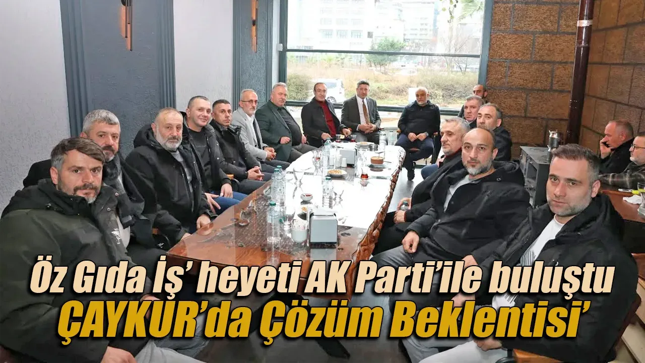 Öz Gıda İş Sendikası heyeti, ÇAYKUR bünyesinde görev yapan mevsimlik işçilerin kronikleşen sorunlarını çözüme kavuşturmak amacıyla AK Parti Rize İl Başkanlığı ile bir araya geldi. Görüşmede, işçilerin çalışma süreleri ve boş kadroların doldurulması konuları masaya yatırıldı.