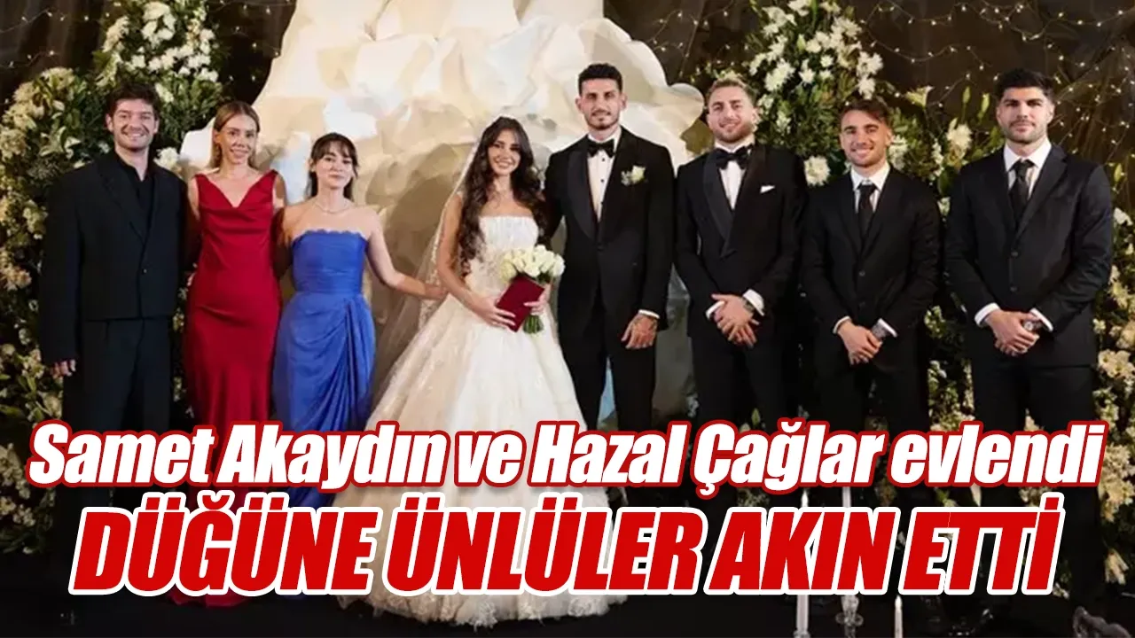 Milli futbolcu Samet Akaydin ve oyuncu Hazal Çağlar önceki akşam düzenlenen görkemli bir törenle evlendi.