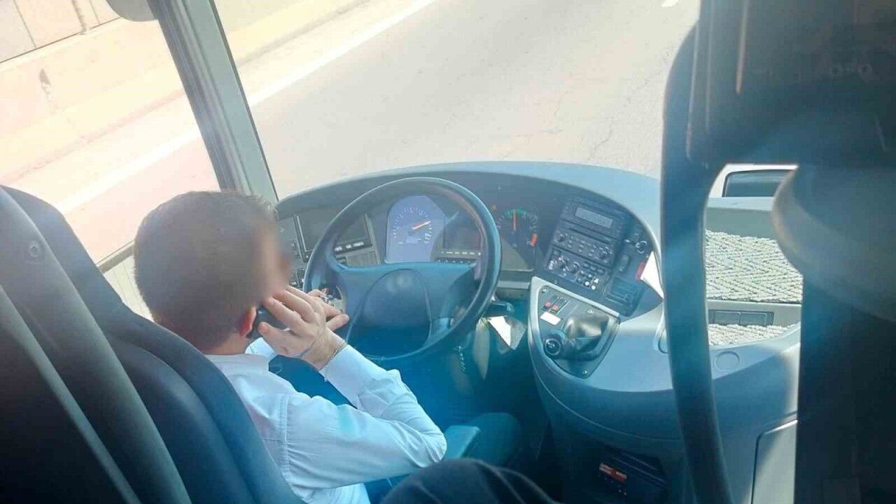 Cep telefonu ile konuşan otobüs şoförü sivil denetime takıldı