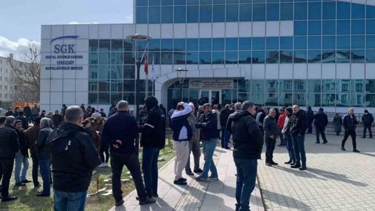 Emeklilikte yaşa takılanlarla(EYT) ilgili düzenlemenin Resmi Gazete’de yayımlanmasının ardından Çerkezköy Sosyal Güvenlik Kurumu (SGK) binası önünde yoğunluk oluştu. Vatandaşlar e-devletin kilitlenmesi nedeniyle şubelere akın etti. Çerkezköy SGK önünde bekleyen vatandaşlar “Emeklilik başvurusu için geldik. E-devletten işlem yapamıyoruz, hata veriyor. Sabah 07.00’den beri sırada bekliyoruz. Mecburen bekleyeceğiz, bugün olmazsa yarın, yarın olmazsa öbür gün işlemlerimizi inşallah halledeceğiz” dedi.