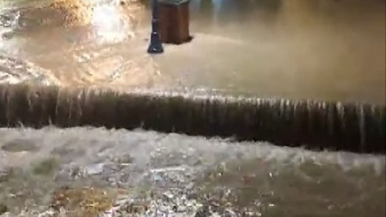 İzmir’in Çeşme ilçesinde gece saatlerinde etkili olan kuvvetli sağanak nedeniyle cadde ve sokaklar göle döndü, bazı ev ve iş yerlerini su bastı. Denizden çekilen bir videoda ise adeta denizle karanın birleştiği görüldü.