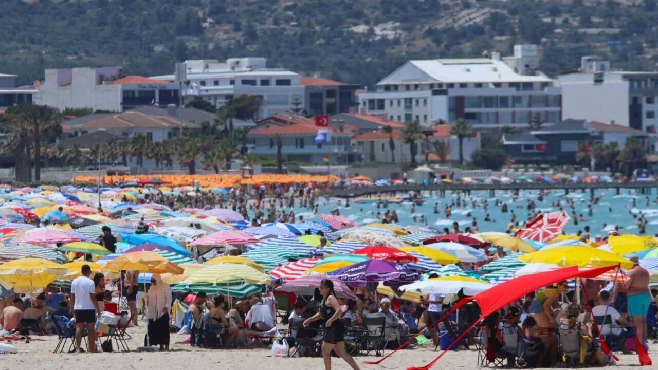 Kurban Bayramı’nın ikinci gününde tatilciler İzmir’in Çeşme ilçesine akını ediyor. Nüfusu 1 milyonu aşan ilçede vatandaşlar denizin ve kumun tadını çıkartıyor. İlçenin en ünlü plajlarından Ilıca Plajı’nda yaşanan yoğunluk havadan görüntülendi.