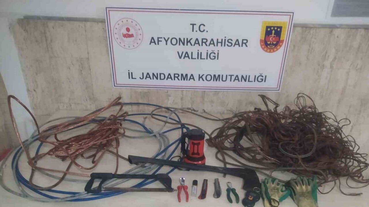 Afyonkarahisar’ın Emirdağ ilçesinde çiftçilerin trafo kablolarını çalan ve 9 farklı hırsızlık olayına karıştıkları tespit edilen 2 şahıs jandarmanın titiz takibi sonrası yakalandı.
