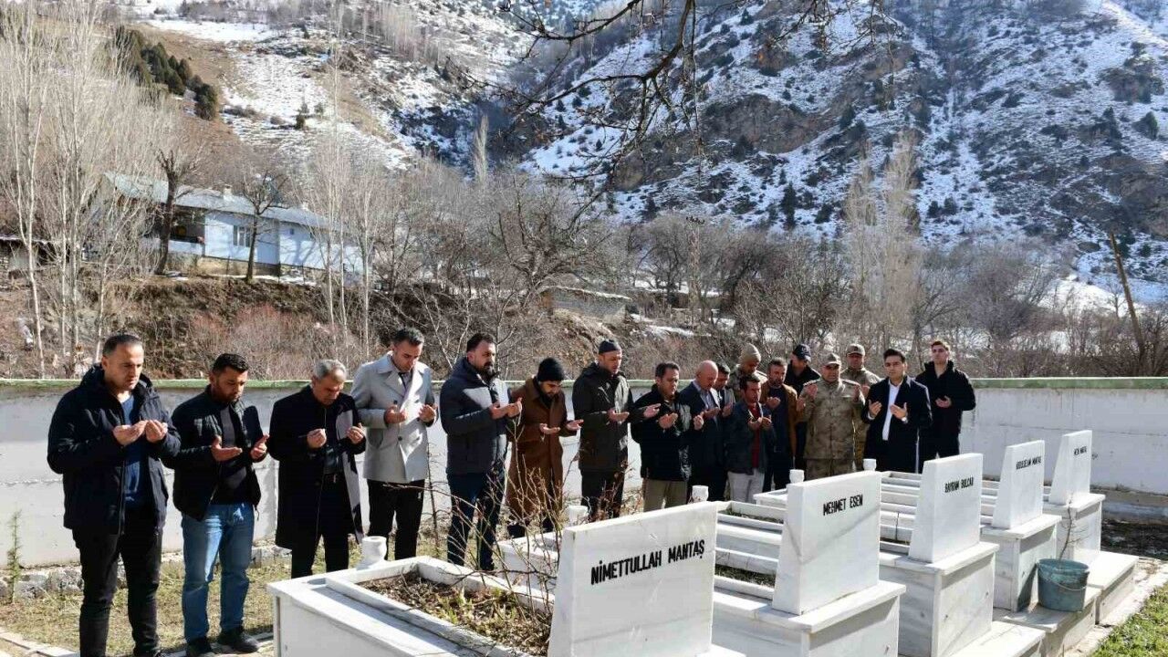 Bahçesaray yolundaki 3 bin rakımlı Karabet Geçidi’nde 4-5 Şubat 2020 tarihlerinde gerçekleşen ve 11 askerle birlikte toplamda 42 kişinin şehit olduğu çığ faciasının acısı, aradan geçen 5 yıla rağmen taze kalmaya devam ediyor. Anma programları kapsamında şehit güvenlik korucularının kabirlerinin bulunduğu Çatak ilçesine bağlı Alacayer Mahallesi Çemik mezrasında bir araya gelindi. Burada İlçe Kaymakamı Kadir Kılıç, İlçe Jandarma Komutanı Yarbay Gülali Çendik, Komando Tabur Komutanı Ömer Kaplan, İlçe Emniyet Amir Vekili Oğuzhan Güzelişler, AK Parti İlçe Başkanı Fazıl Babur ve şehit yakınları dualar etti. Kaymakam Kılıç ve beraberindekiler, anma programının ardından şehit ailelerini de ziyaret etti.