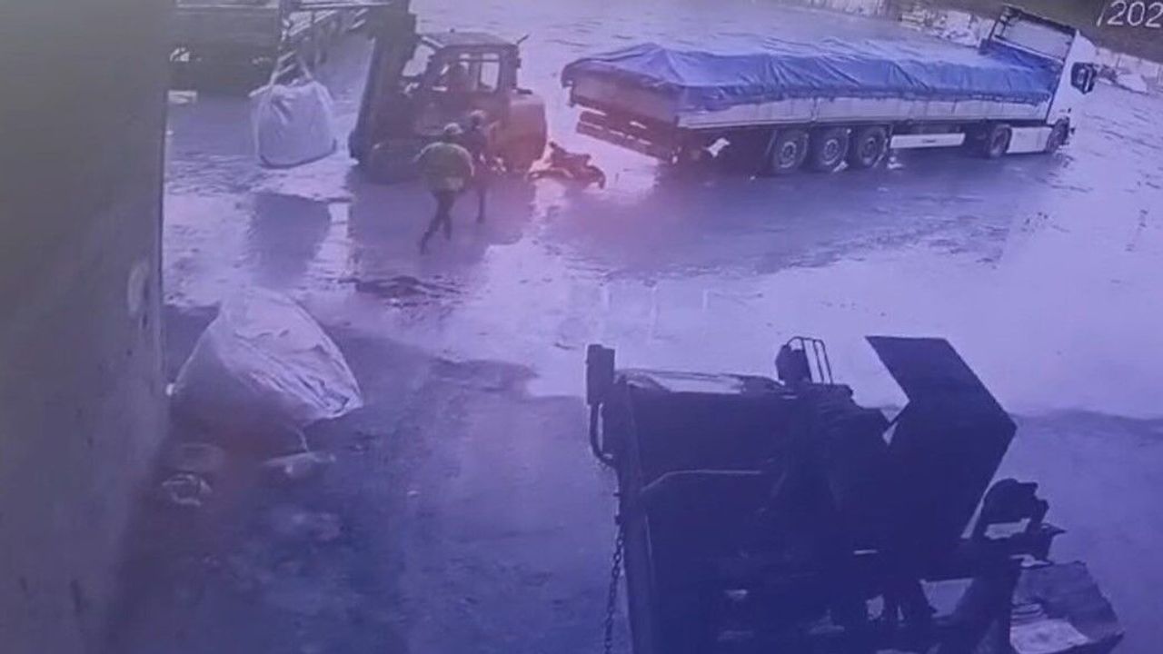Isparta’da bir çimento fabrikasında forkliftin geri manevra yaptığı esnada çarptığı kamyon şoförünün hayatını kaybettiği kazaya ilişkin güvenlik kamerası ortaya çıktı.