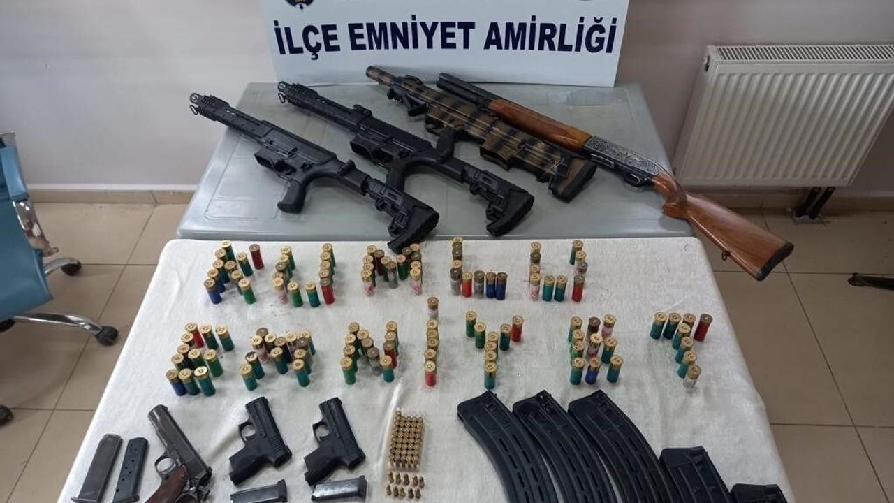Hatay’ın Kırıkhan ilçesinde cinayetten aranan zanlının evinde yapılan aramada 4 tüfek, 3 tabanca ele geçirildi.