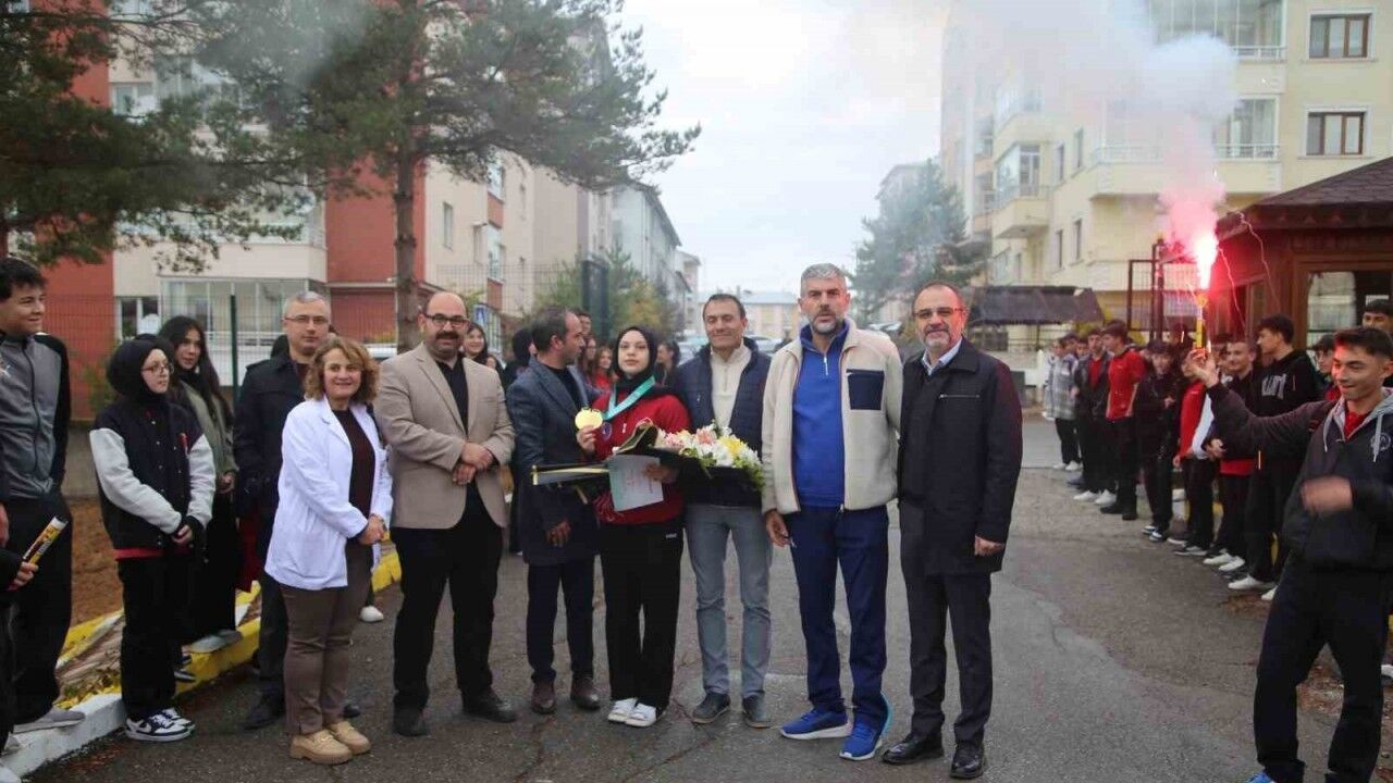 Şampiyona sonrası Sivas’a dönen Afra Kılınç için eğitim gördüğü Hacı Mehmet Sabancı Anadolu Lisesi’nde coşkulu bir karşılama töreni düzenlendi. Okul arkadaşları, genç sporcuyu meşalelerle karşılayarak sürpriz yaptı.