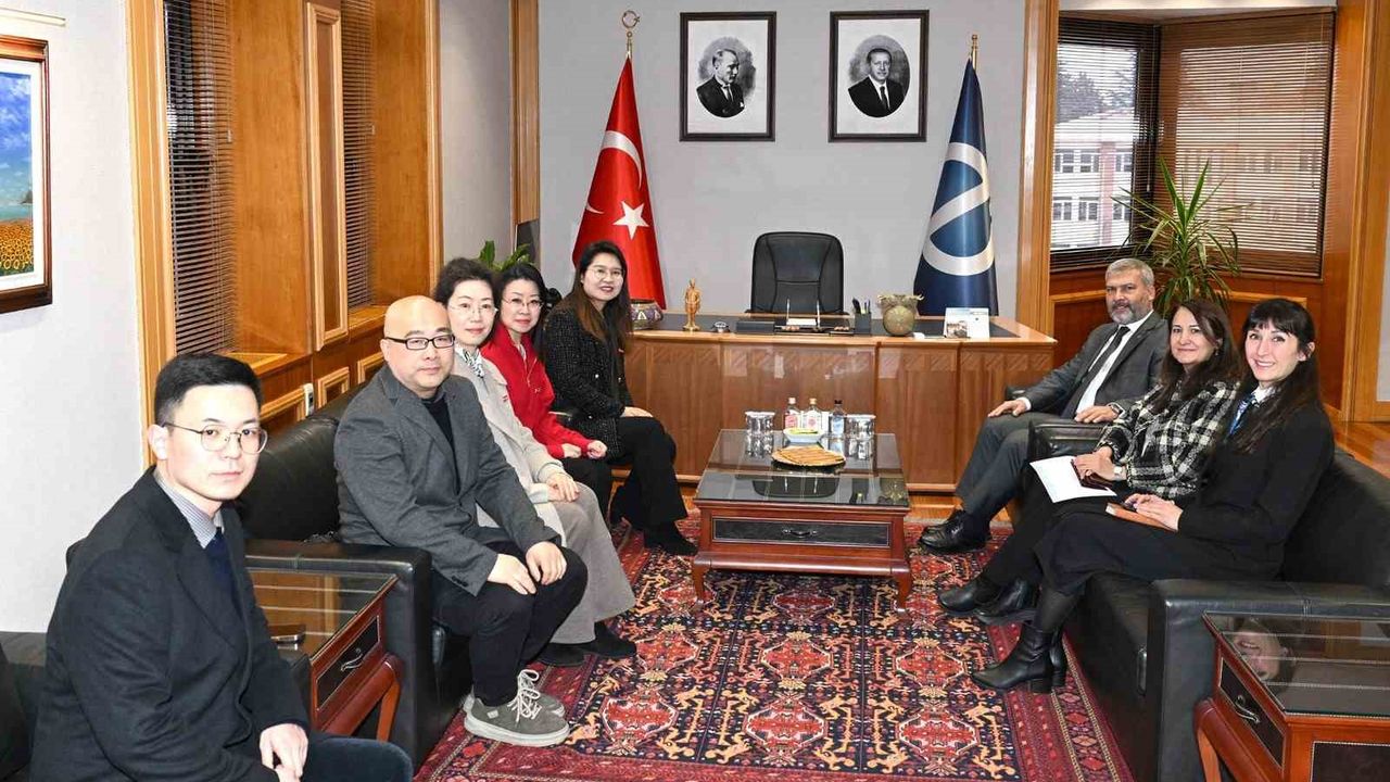 Türkiye-Çin diplomatik ilişkilerinin 55'inci yılı kutlamaları kapsamında düzenlenen 'Diyalog-Bütünleşme' başlıklı sergi çerçevesinde, Çin Büyükelçiliği, Changzhou Teknoloji Enstitüsü (CIT) ve Anadolu Üniversitesi sanatçılarının yer aldığı ortak sergiye katkı sunan Çinli heyet, Anadolu Üniversitesi Rektörü Prof. Dr. Yusuf Adıgüzel'i makamında ziyaret etti.