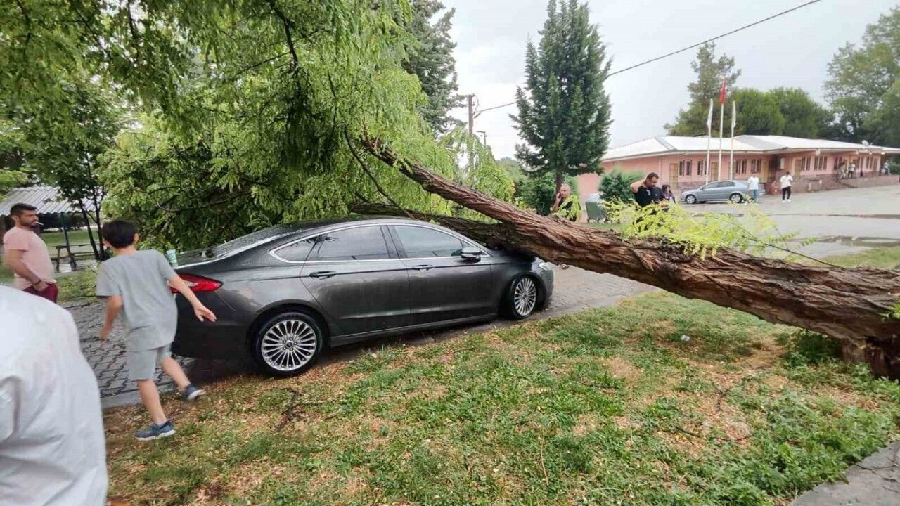Mevsim normalleri üzerinde seyreden hava sıcaklıkları sağanak yağışla bir nebze olsun normale dönerken etkili olan rüzgar ağaçları kökünden söktü. Çivril’de şiddetli fırtına dolayısıyla kökünden ayrılan ağaç, park halindeki aracın üzerine devrildi.