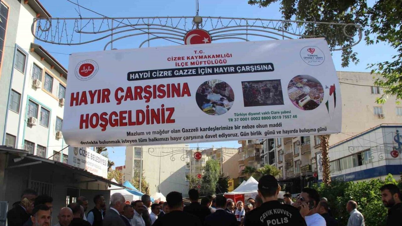 Şırnak’ın Cizre İlçe Müftülüğü, ’Cizre Filistin için el ele’ yardım çarşısı düzenledi. 3 gün boyunca düzenlenecek hayır çarşısının geliri, İsrail’lin bombaları altında evsiz kalan Gazzelilere ulaştırılacak.