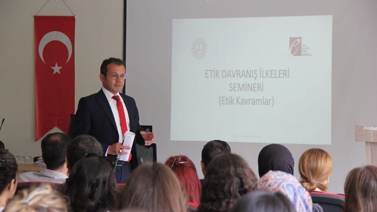 Etik değerlerin öneminin vurgulandığı seminerde, etik davranış ilkeleri, etik yönetim ve etik mevzuatı gibi konular detaylı bir şekilde ele alındı.
